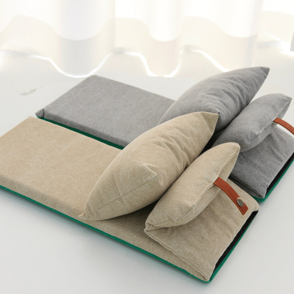 マイクロファイバー綿の愛犬が顎を乗せる用の枕が付属されており、バッグ片側から顔をのぞかせる際に愛犬が疲れずリラックス出来るようになっています。