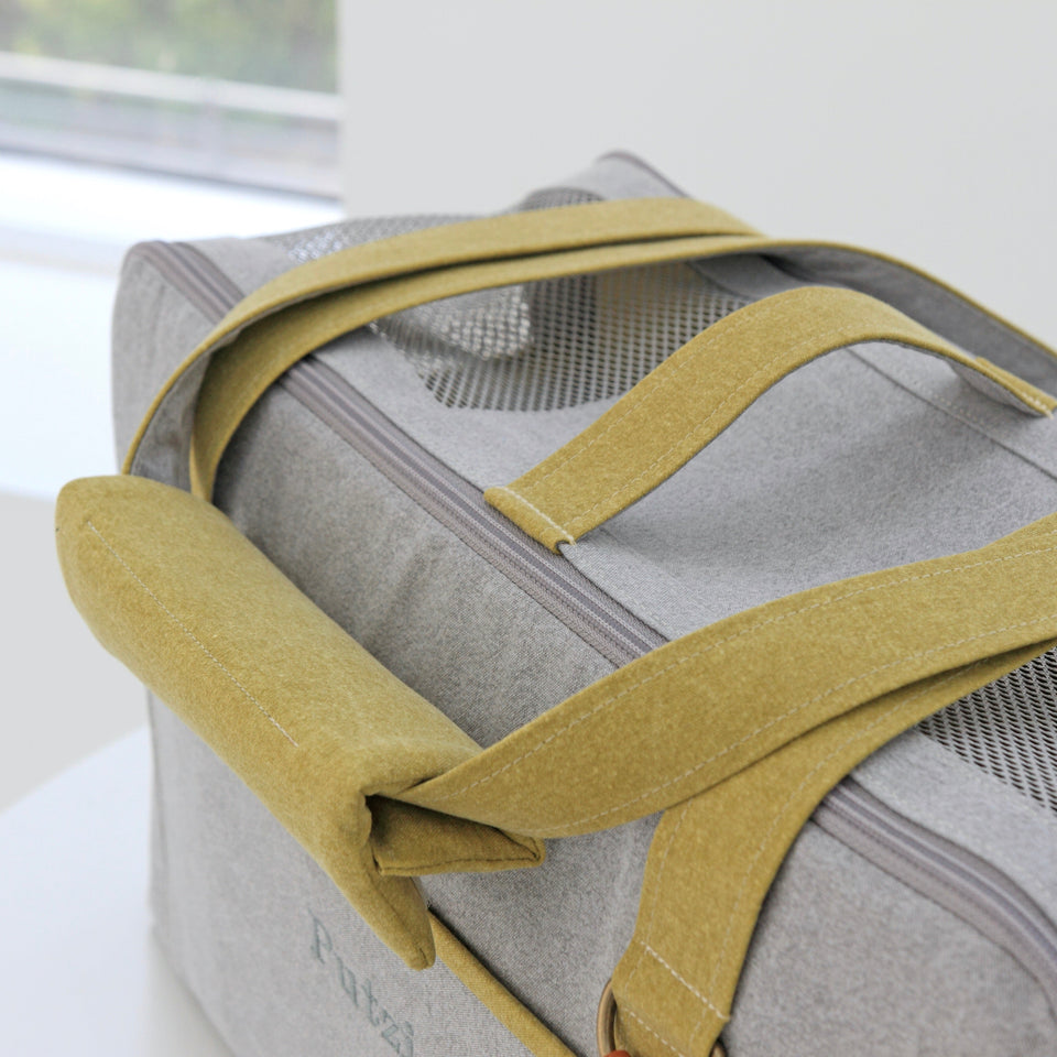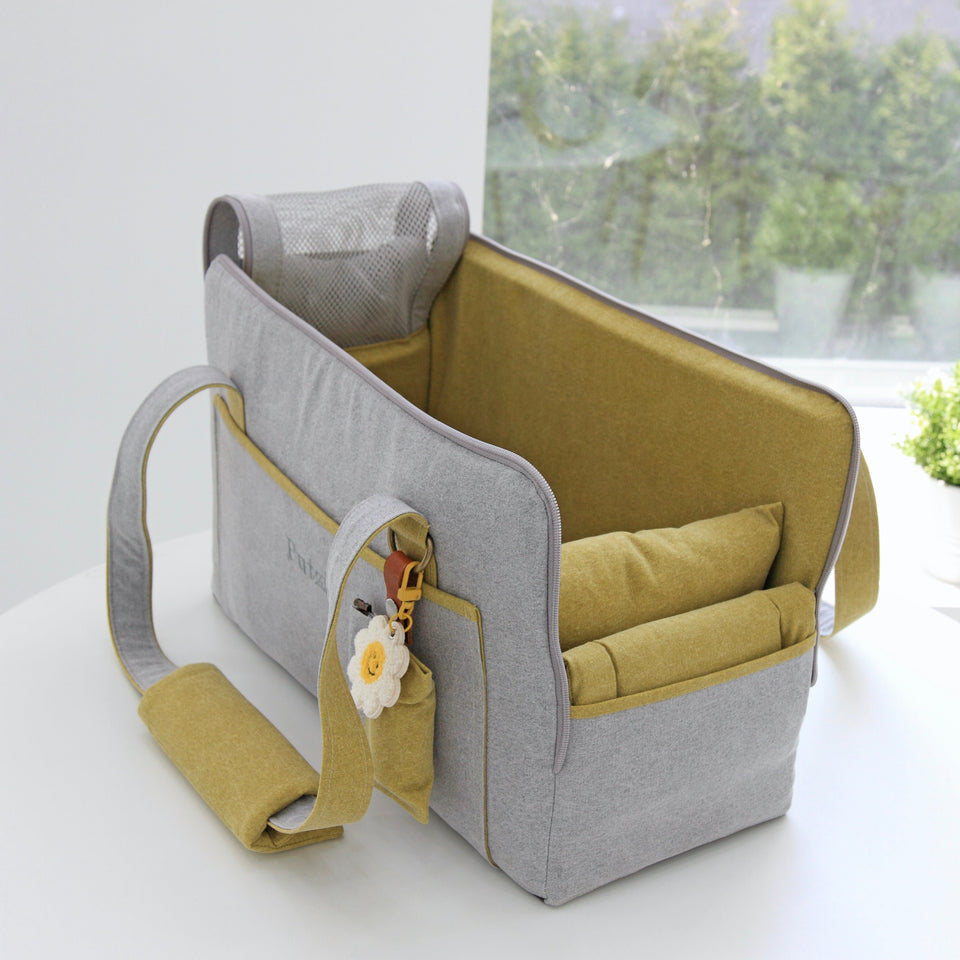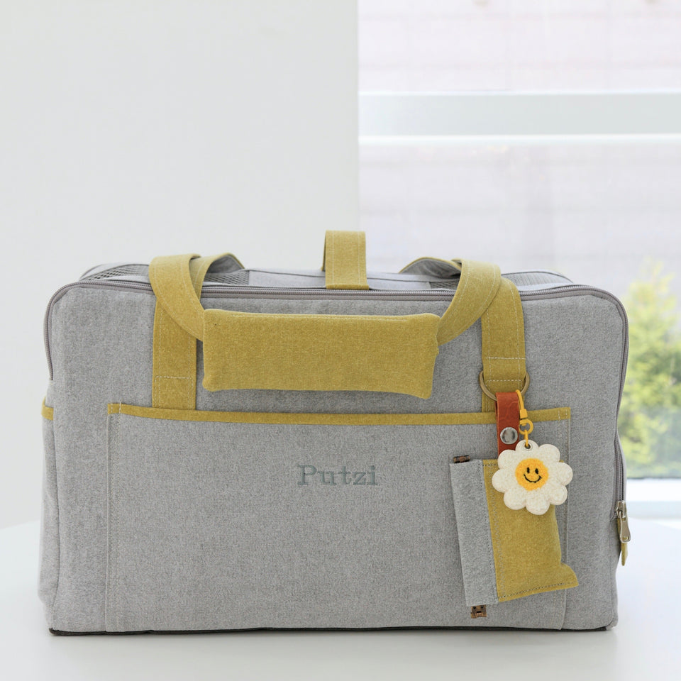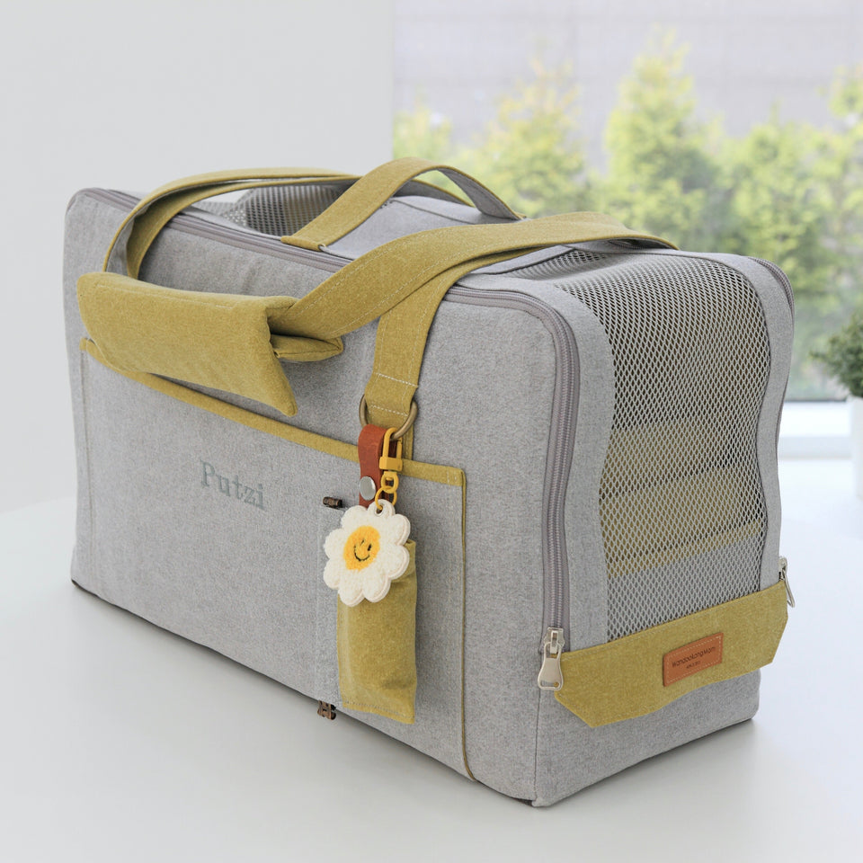 ※予約販売【WandookongMom】Putzi Pastello ネーム刺繍入りキャリーバッグ(グレー/オリーブイエロー)