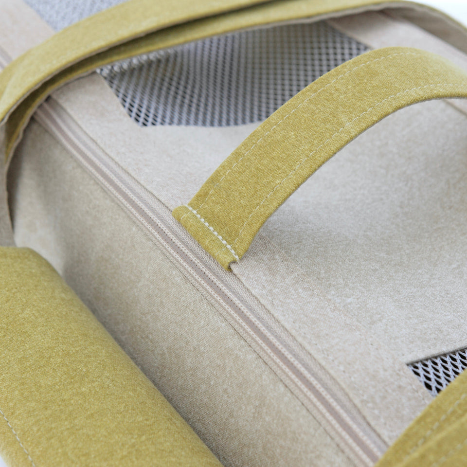 底板の丈夫さとクッション性は愛犬の体への負担や耐久性を考える上で欠かせません。このキャリーバッグに合わせて研究を重ねて作った底板は3cmの厚みにベッドのようなふんわりとしたクッション性と10kgの重さにも絶対に折れない耐久性を実現!底板のカバーは清潔さをキープするためにファスナーで簡単に外せて洗濯可能です。