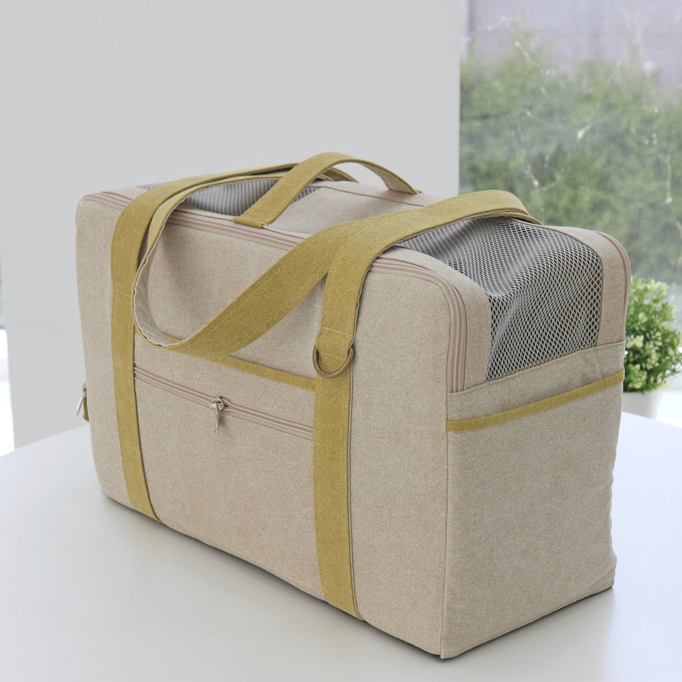 飛行機での移動や新幹線での移動など旅行や帰省で愛犬を連れて行く際にも便利なバゲッジの持ち手を通すためのスペースがあるので、移動に便利なデザインです。