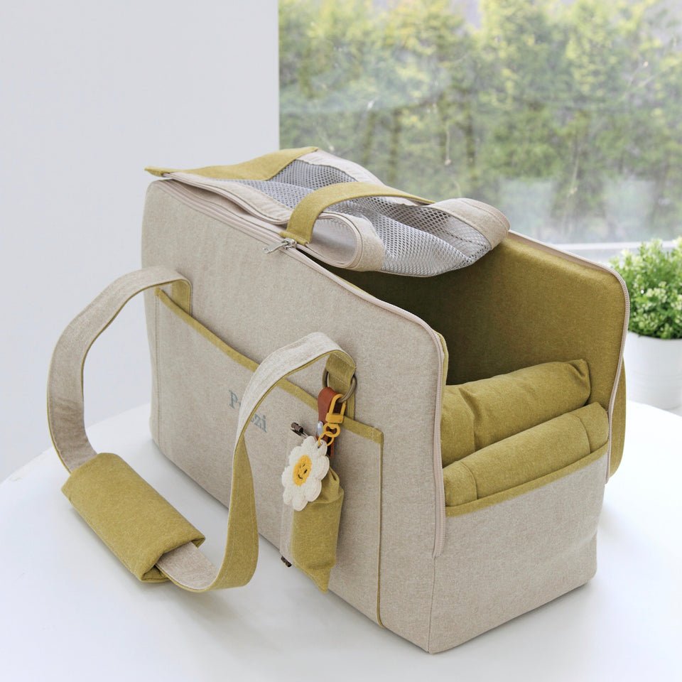 ※予約販売【WandookongMom】Putzi Pastello ネーム刺繍入りキャリーバッグ(ベージュ/オリーブイエロー)