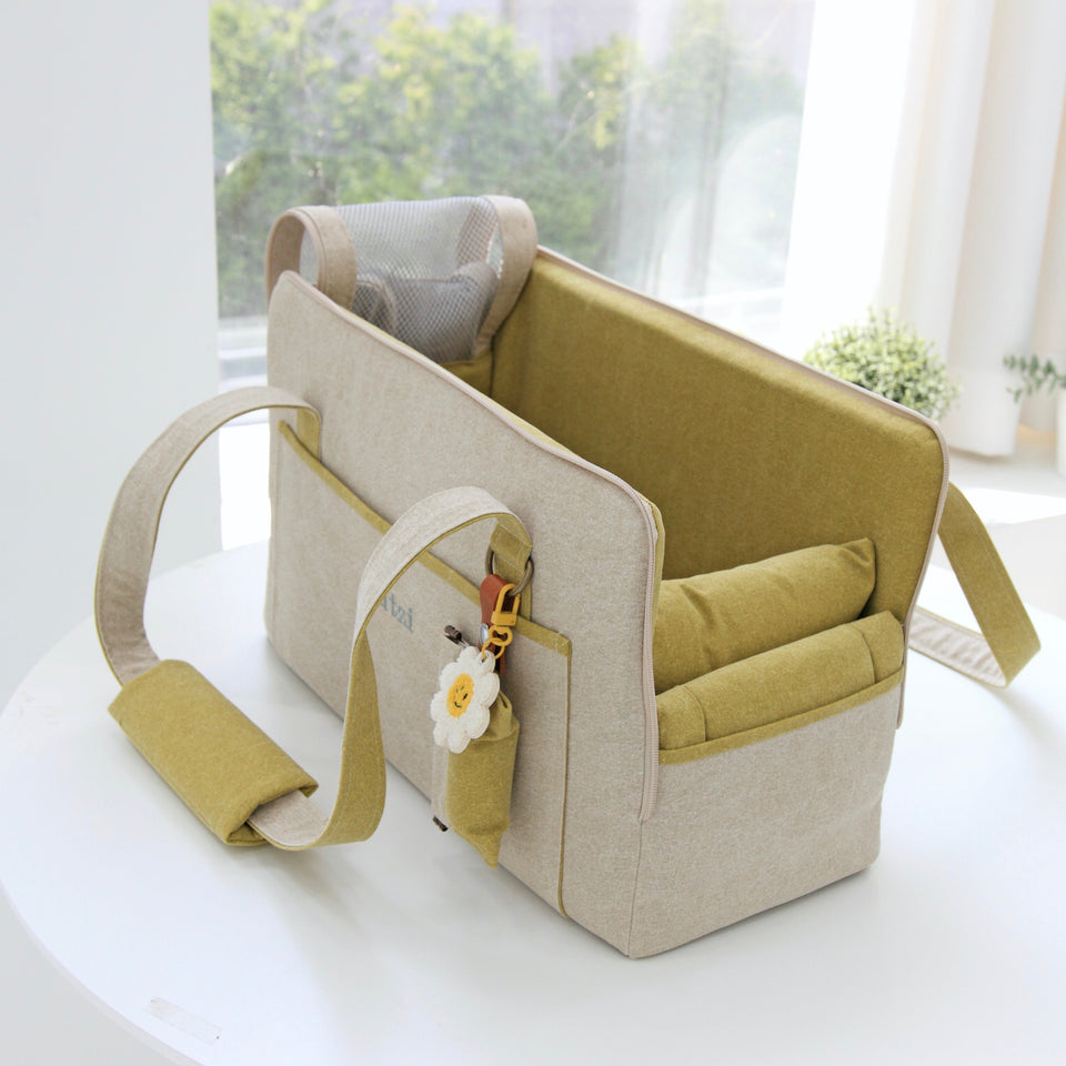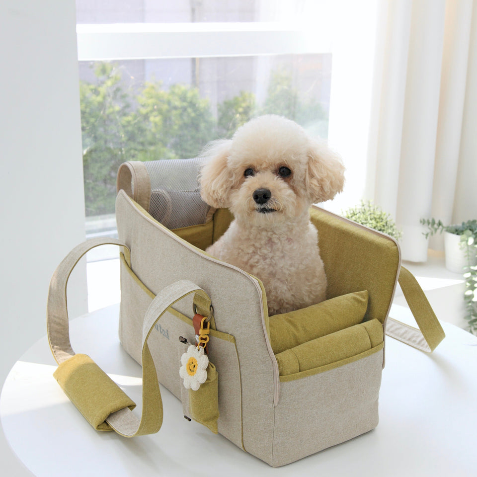 WandookongMomのキャリーバッグで最多となる4つの収納が付いていて、収納力も抜群!お出かけの際に愛犬のおもちゃやケア用品などもたっぷり収納可能です。また、WandookongMomは愛犬にとって居心地良いスペースにするために全てのバッグでバッグの内側にポケットを付けてなく、全て外側に配置することで物が直接体に触れて不快にならないように配慮されています。